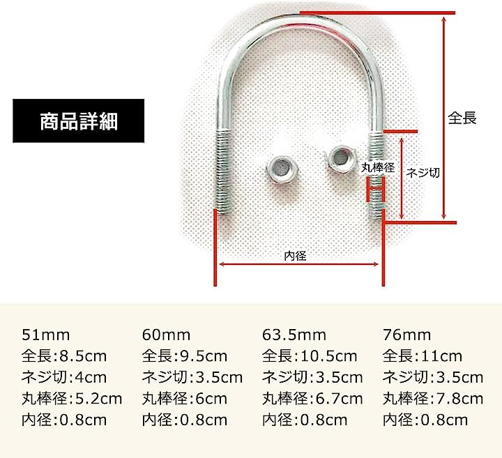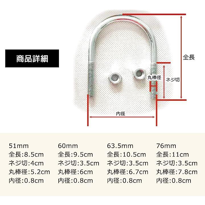 互換品マフラークランプ U字 汎用 ステンレス エキゾーストクランプ 排気クランプ マフラーバンド YM-265-MU
