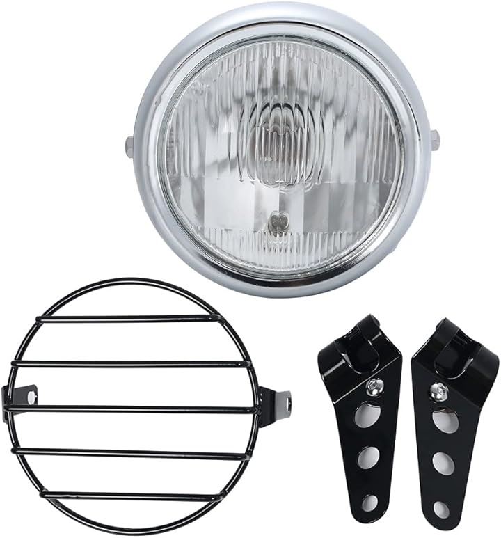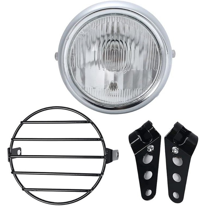12V ビンテージ ベーツライト ヘッドライト ブラケット 付き ボバー ガード オフロード 5.5インチ H4 TW225 TW250 セロー225 セロー250 トリッカー DT250 XT250 等 汎用 社外品