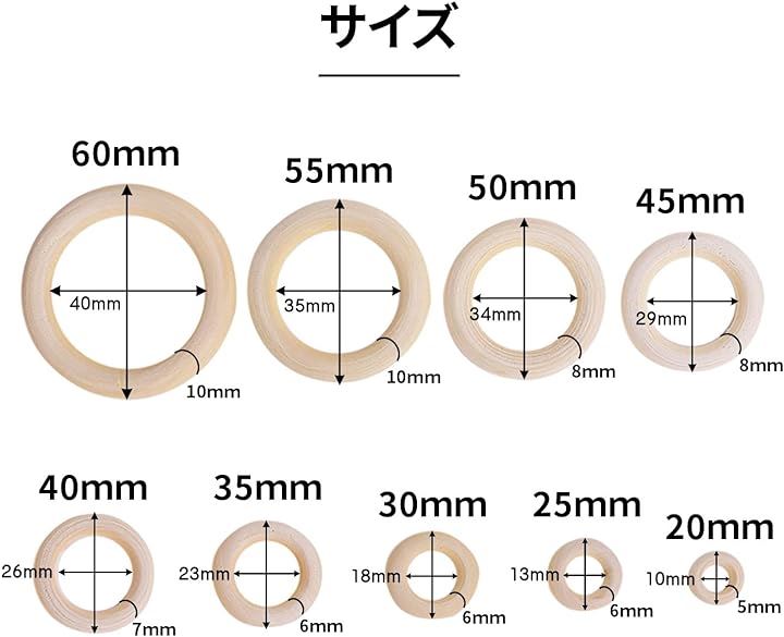 Lack labo ウッド リング 木製 の 輪 無塗装 工作材料 手工芸 ブレスレット DIY 木 大容量 たくさん |
