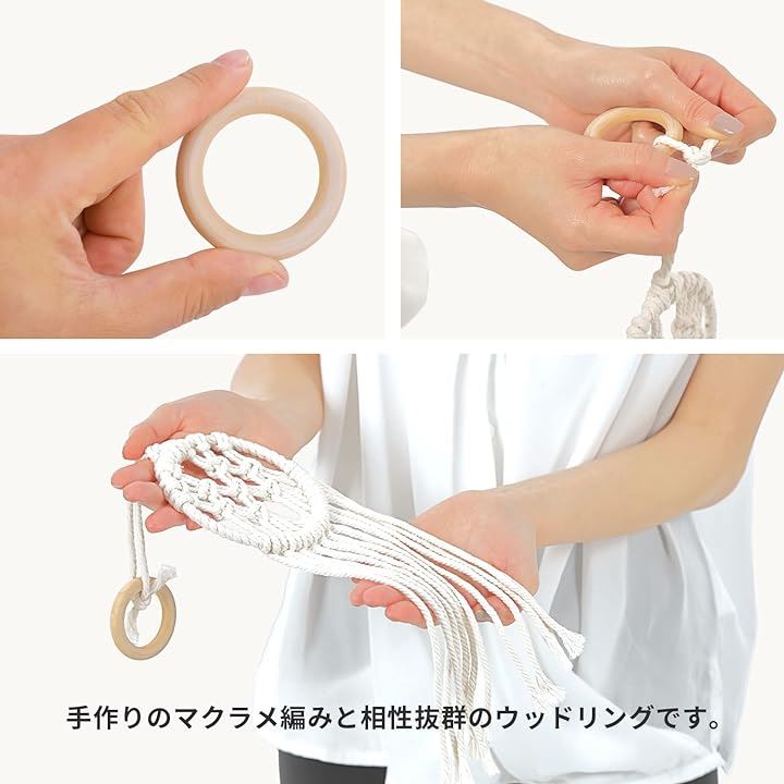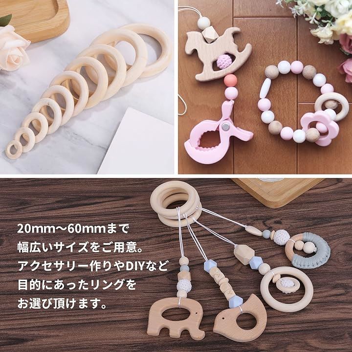 「ラトルやベッドメリーの自作に」 天然素材の特性を活かした、滑らかな手触りが心地良いウッドリングです。