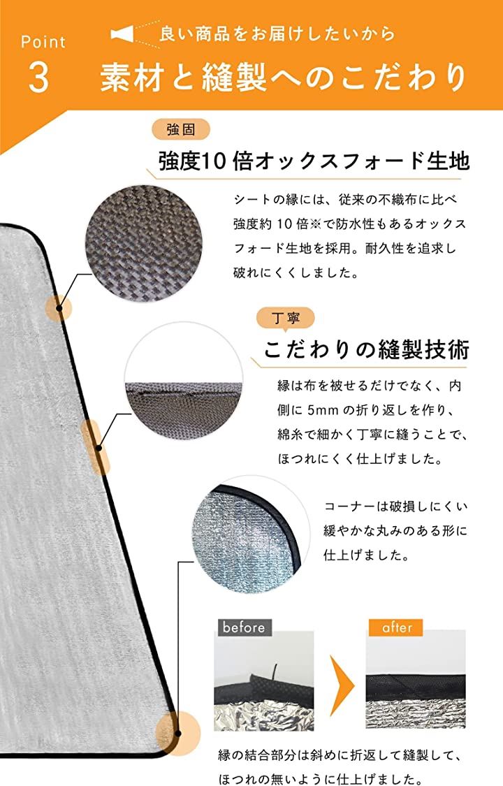 シートの縁には、従来の不織布に比べ強度約10倍*で防水性もあるオックスフォード生地を採用。