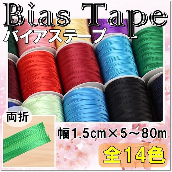 moonfarm 幅広 両折 バイアステープ 選べる14色 幅1.5cm パイピング 縁取り 装飾 |