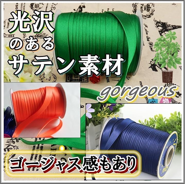 光沢感が美しい、サテン生地の両折・広巾のバイアステープです。