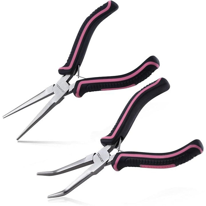 LEONTOOL 先曲リードペンチ 先細 2点セット 先曲がりラジオペンチ 極細 ベントタイプ ストレート 針はずしプライヤー 先長 ギザなし バネ付 多機能 曲げる 掴む 針外し |