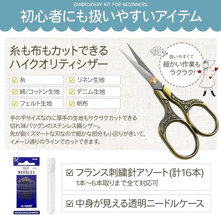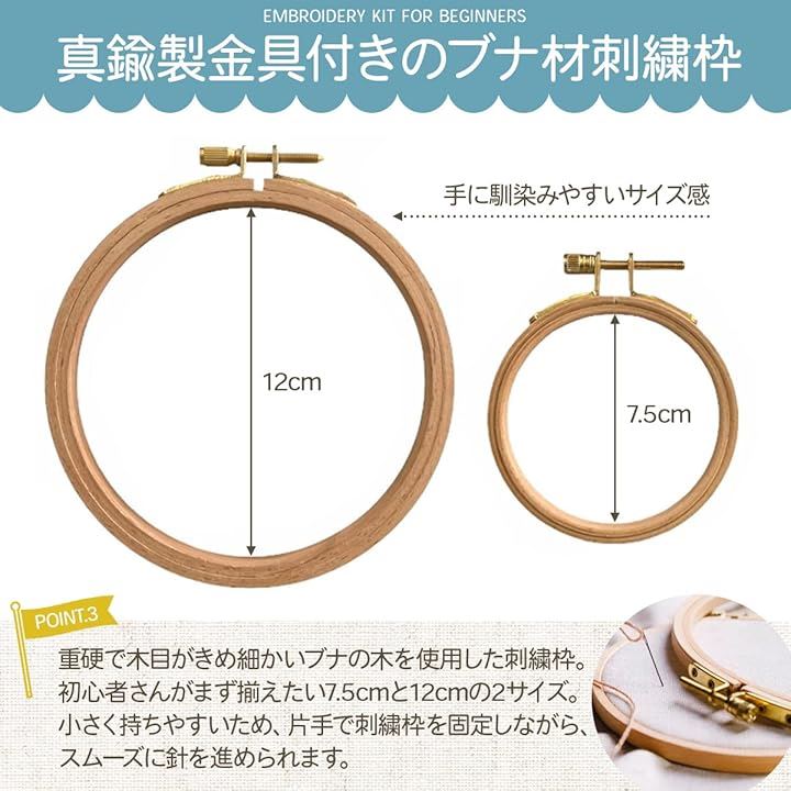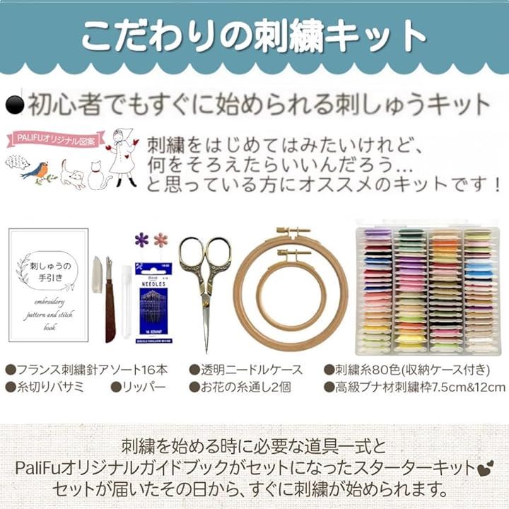 刺繍キット 刺繍糸 刺繍枠 初心者 図案 パターン ステッチ 解説書 付き