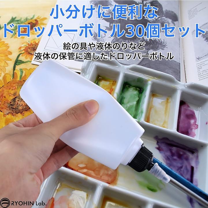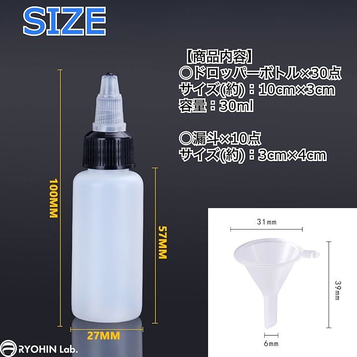 良品ラボ ドロッパーボトル スポイトボトル 小分け 詰め替え用 塗料 グルー 漏斗10個付 30個セット 30ml