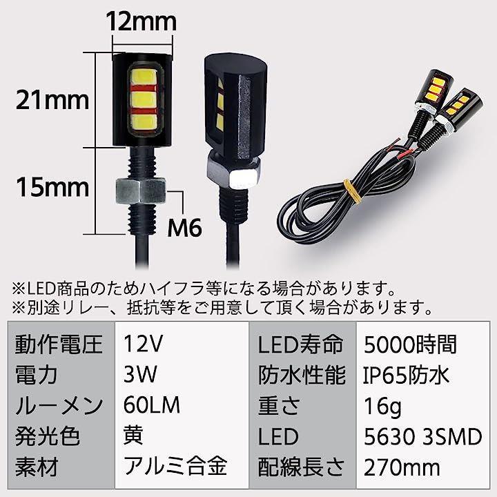 互換品バイク ウインカー LED 汎用 超小型 極小 ナノ ミニ 小さい アンバー 高輝度 防水 オートバイ