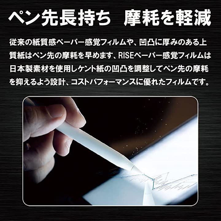 RISEペーパー感覚フィルムは日本製の素材を使用しケント紙の凹凸を調整してペン先の消耗を抑える設計、コストパフォーマンスに優れたフィルムです。