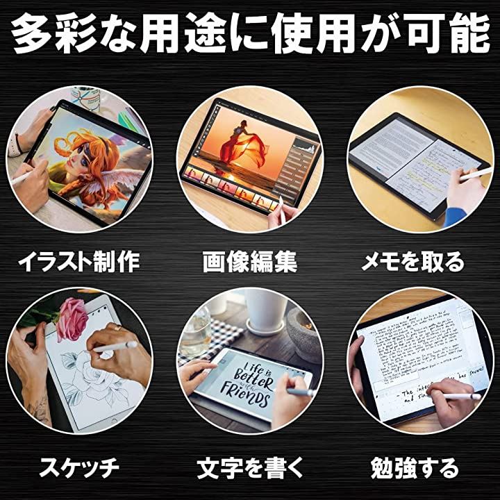 「各種タッチペンに対応」紙に文字を書いたり、絵をかいたりする時の手の感覚はまるで本当の紙に書いている感覚。