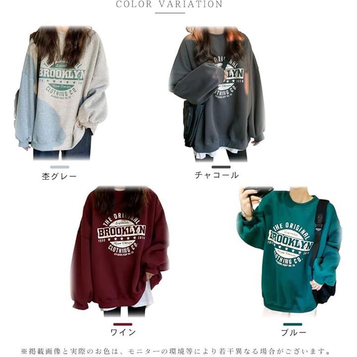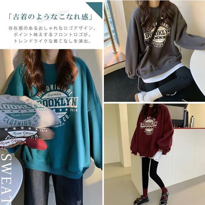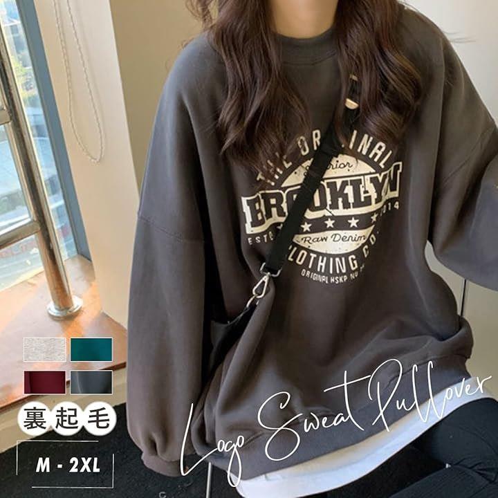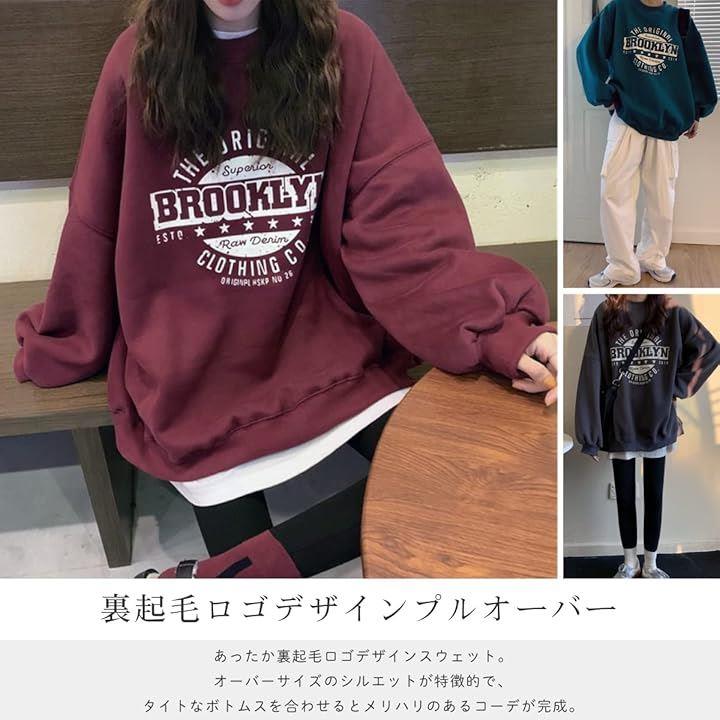 [ウェアビー] 裏起毛 ロゴデザイン スウェット ゆったり 秋冬 オーバーサイズ トレーナー レディース スエット プルオーバー ロゴプリント 厚手 おしゃれ 秋物 冬物 おしゃれな 長袖コーデ デザイン性 |