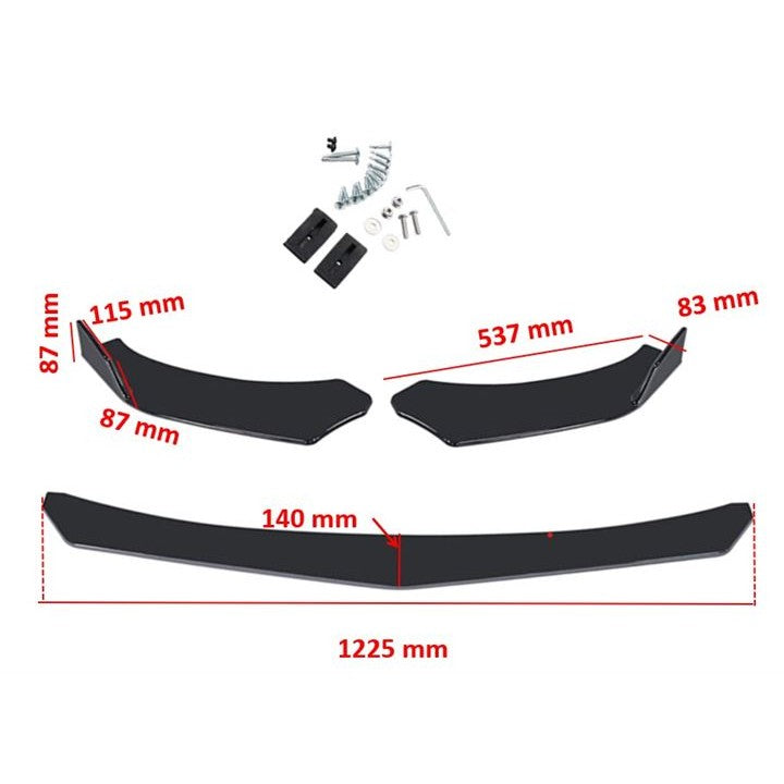 アンダーカナード フロントリップスポイラー 3分割 組み立て 調整可 ブラック 汎用 180sx スープラ 86 シビック