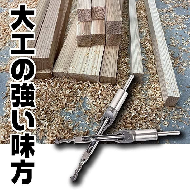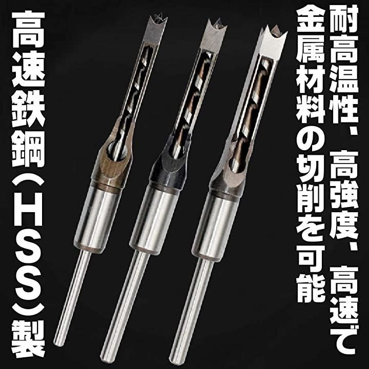 sac taske 角穴ドリル ほぞ穴 チゼル 高硬度 木工 ドリルビット 角のみ 穴あけ 電動工具 (2サイズセット) |
