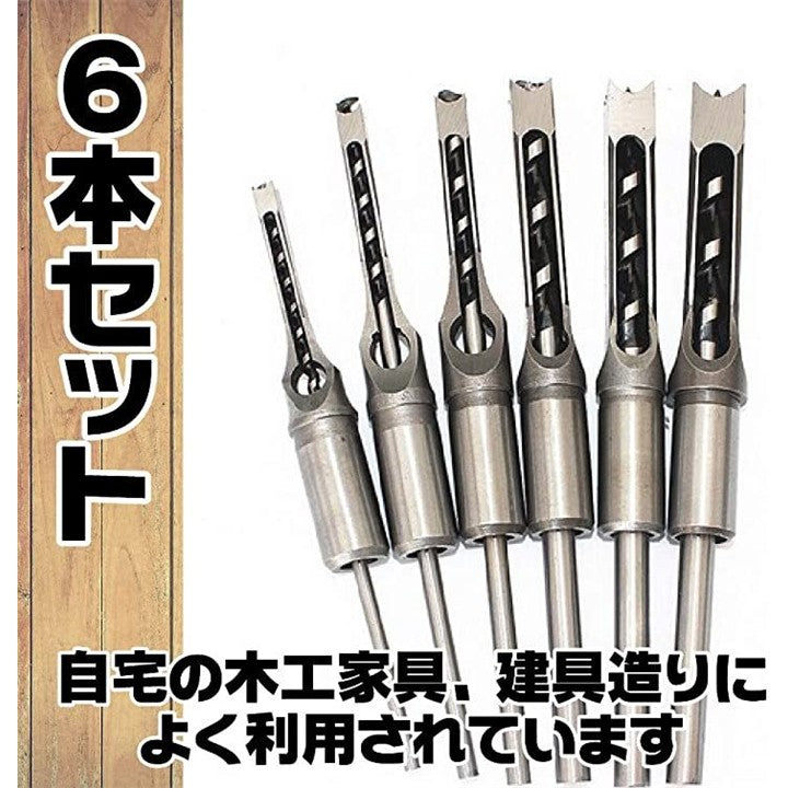 sac taske 角穴ドリル ほぞ穴 チゼル 高硬度 木工 ドリルビット 角のみ 穴あけ 電動工具 (6サイズ セット) |
