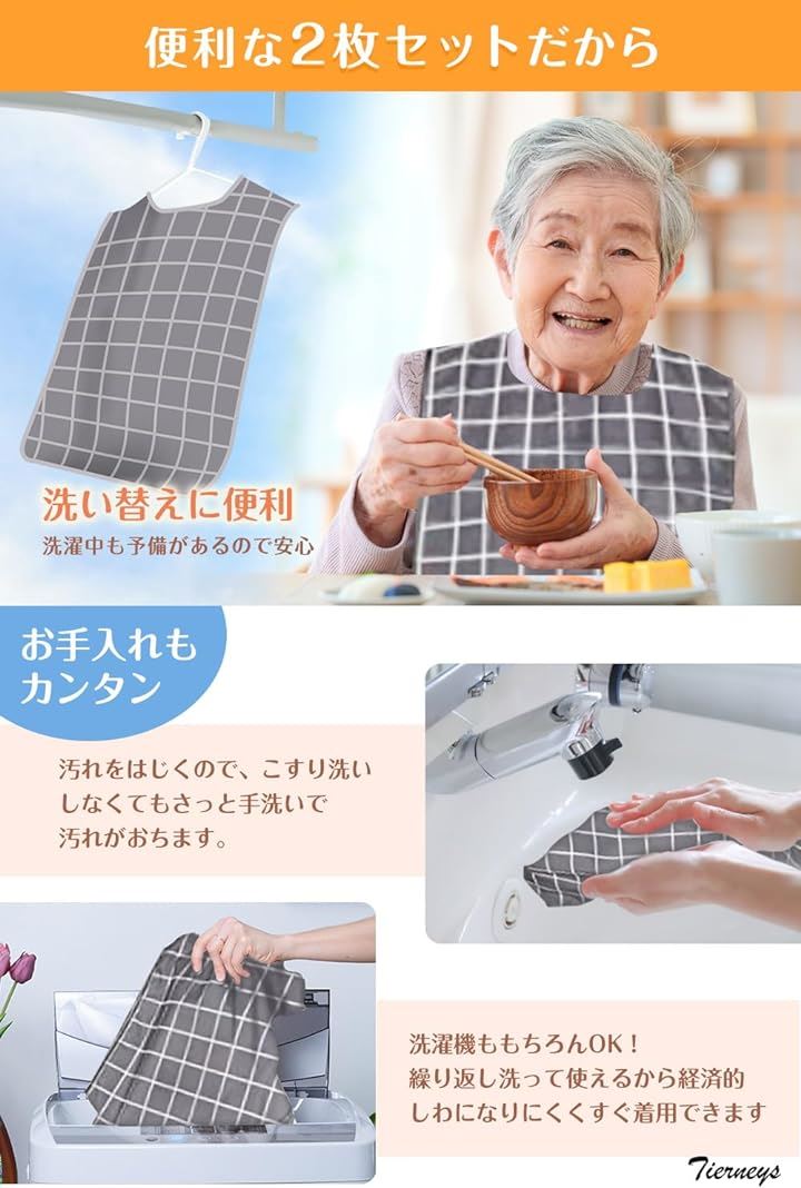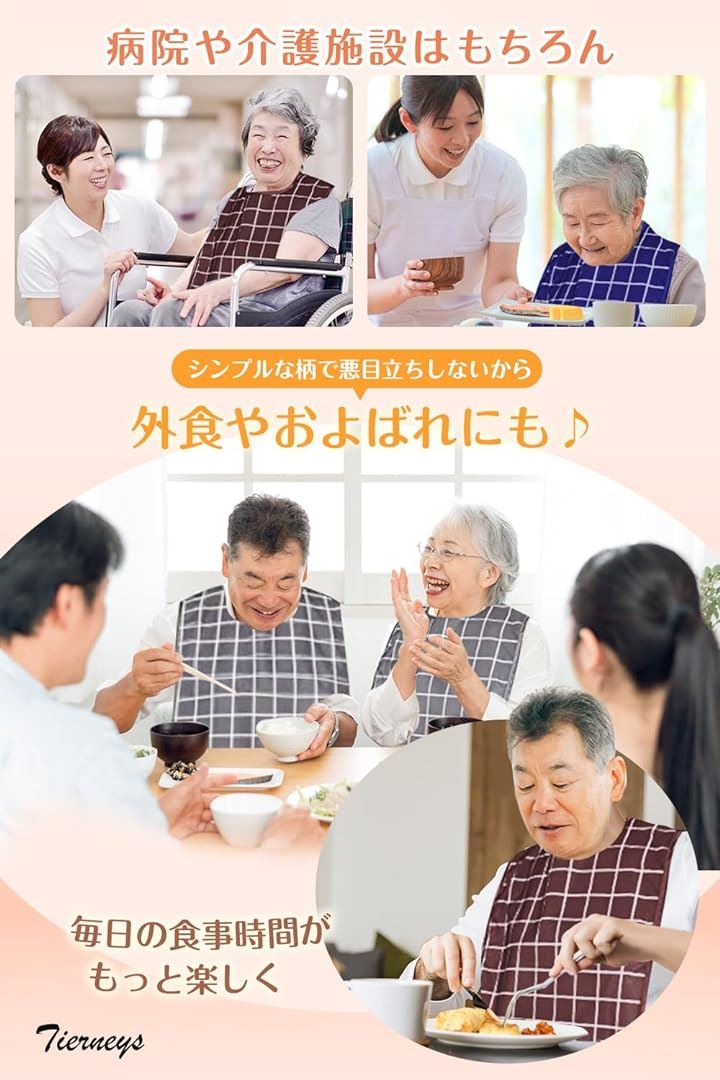 介護エプロン 食事エプロン 介助用エプロン よだれかけ 高齢者 防水 丸洗い可 ポケット付き