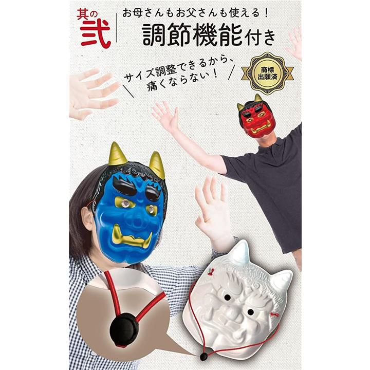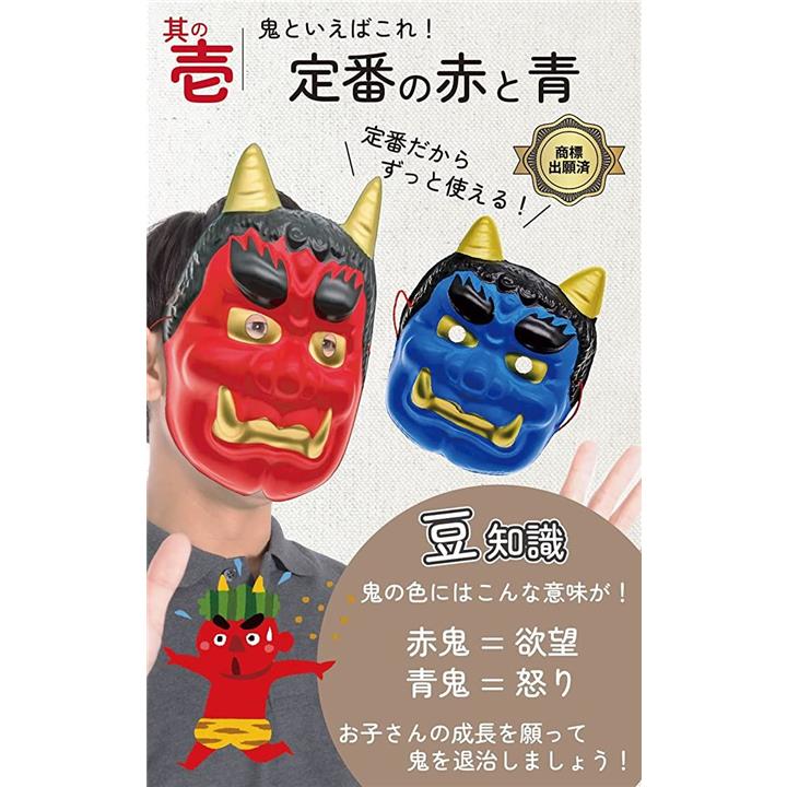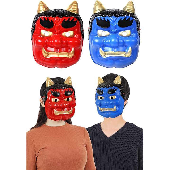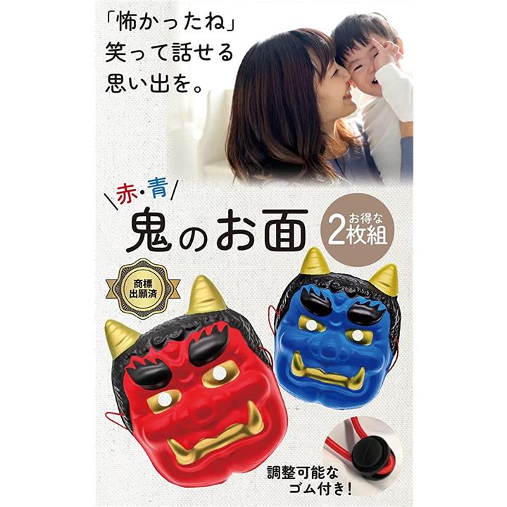 鬼のお面 節分 コスプレ 豆まき 赤鬼 青鬼 2個セット 仮装 ゴム付き サイズ調整可能 男女共用