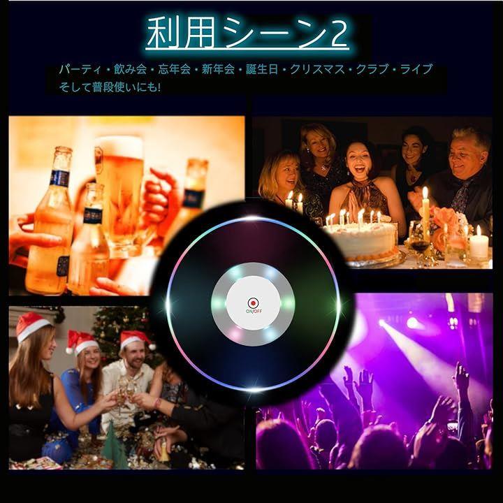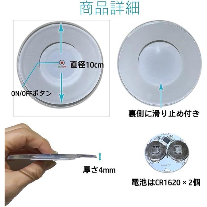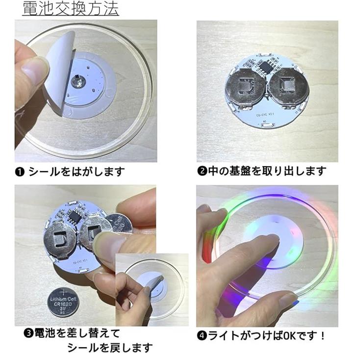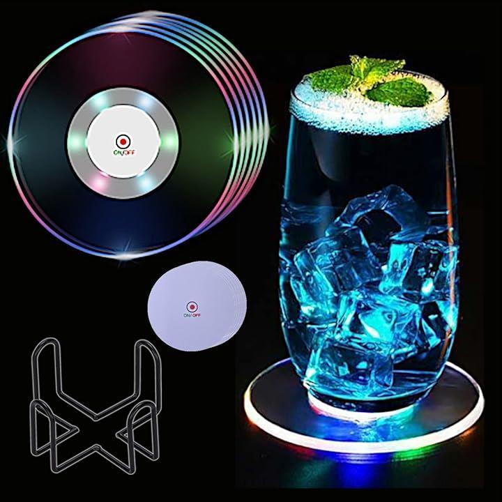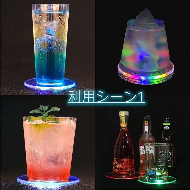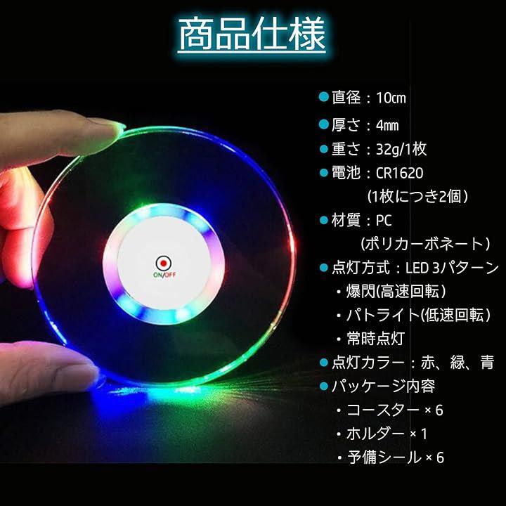光るコースター LEDコースター レインボーカラー 6枚セット コースターホルダー 予備シール 付き
