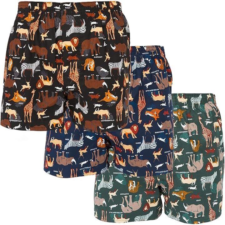 [Y's factory] カジュアル トランクス 3枚セット パンツ メンズ 前開き 下着 インナー アニマル柄 綿100% [ デザインE Lサイズ ] |