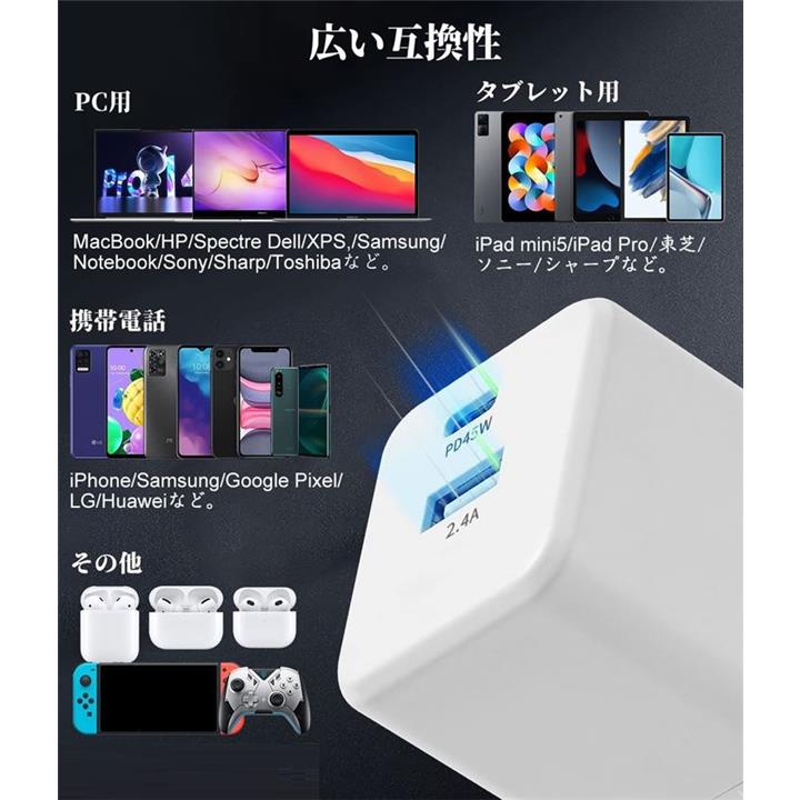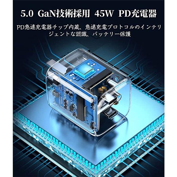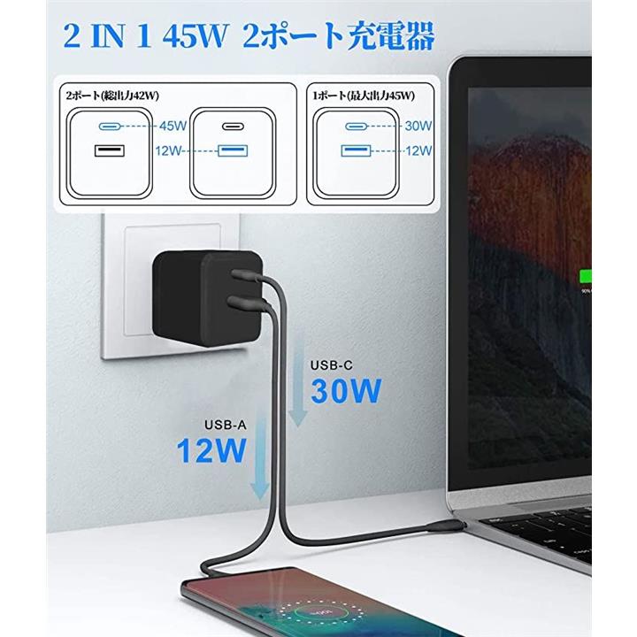 互換品 PD 充電器45W usb type c 急速充電器 GaN 折りたたみ式プラグ type-c 2ポート スマホ USB-C&USB-A