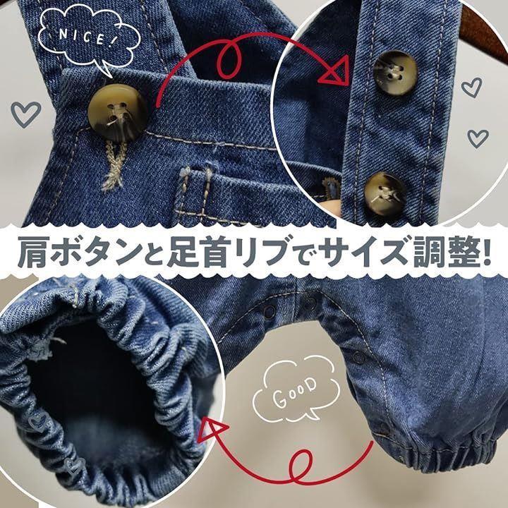 でっぷりシルエットがかわいい オーバーオール ベビー デニムパンツ オールインワン ロンパース ジーパン