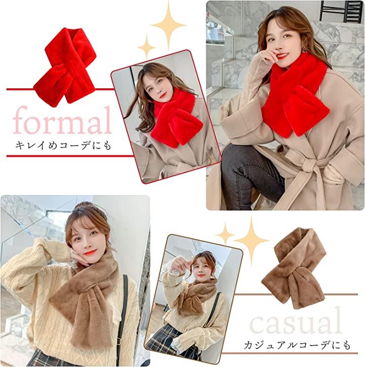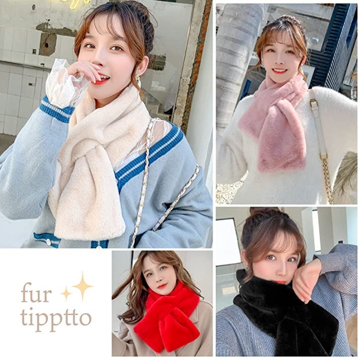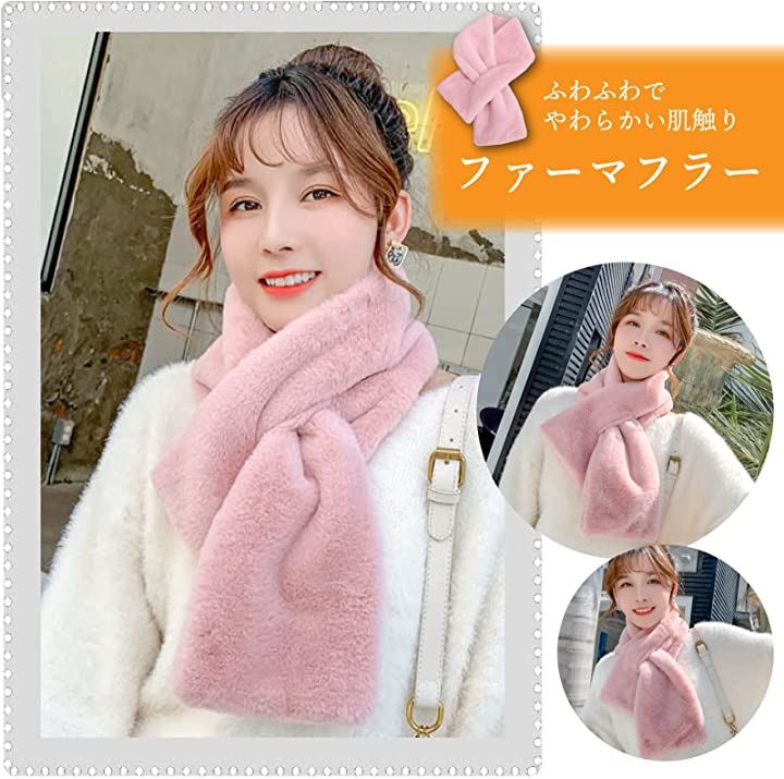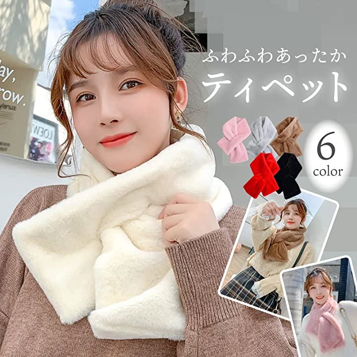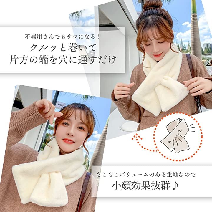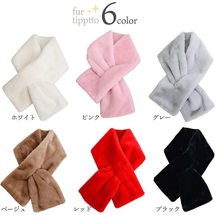 もこもこ ティペット フェイク ファー レディース マフラー ふわふわ 差込み ボリューム 無地 ボア 防寒 軽量