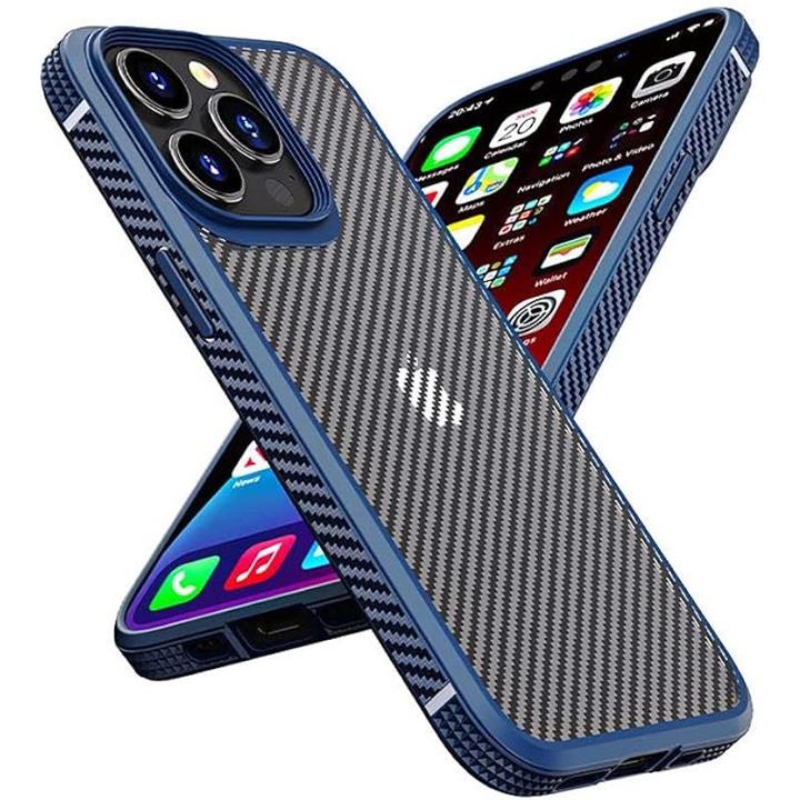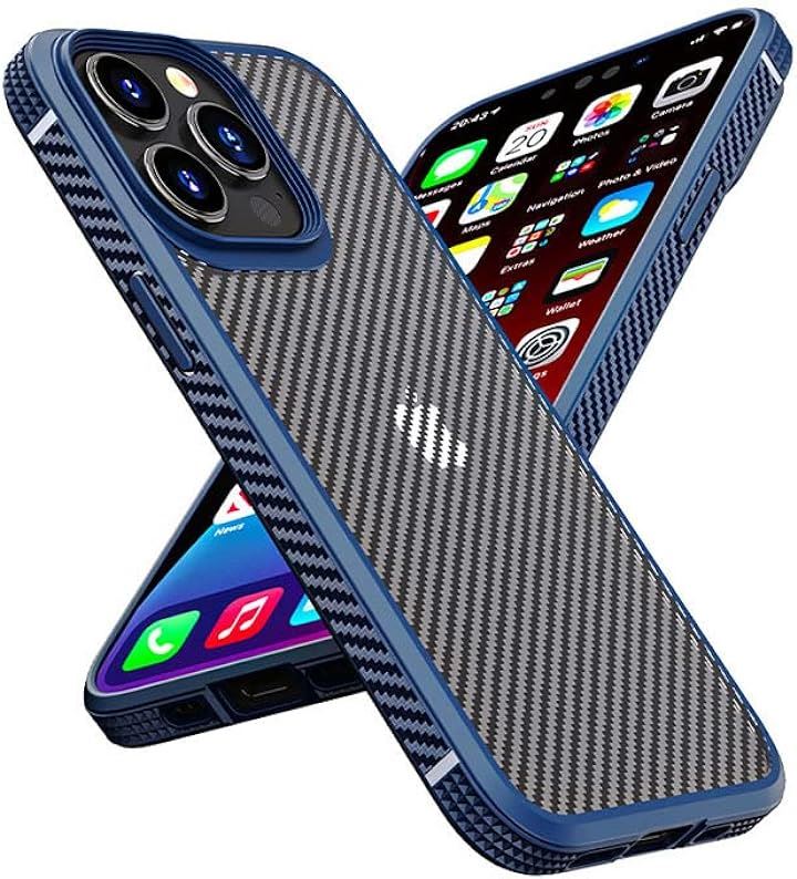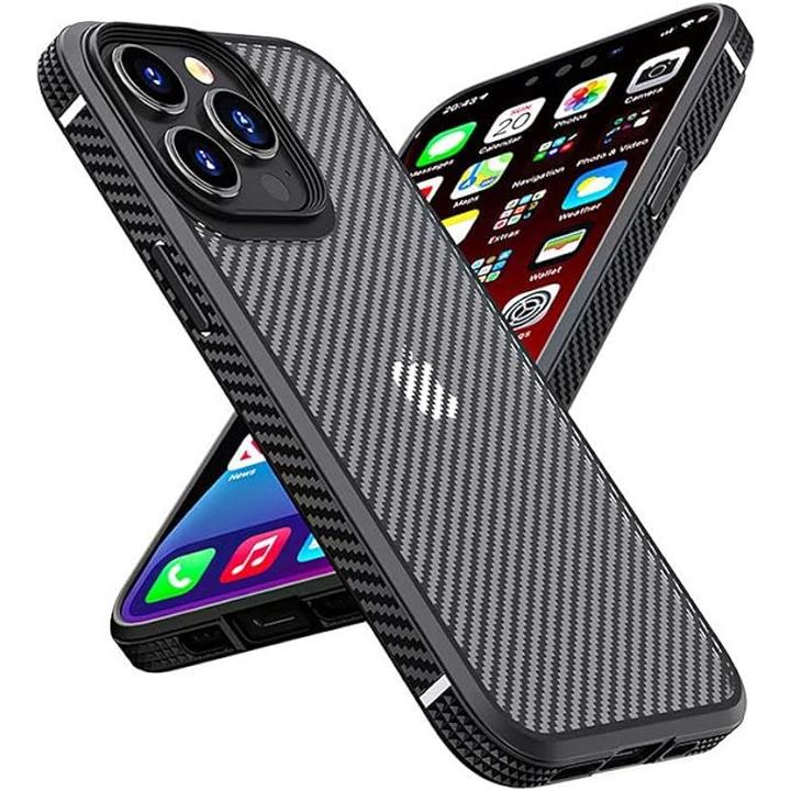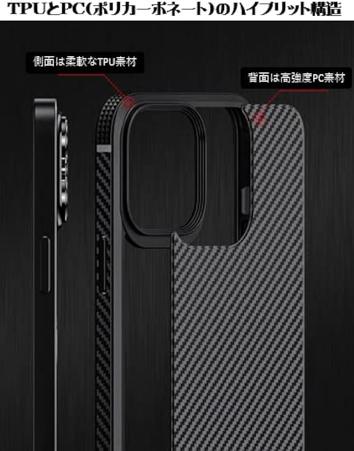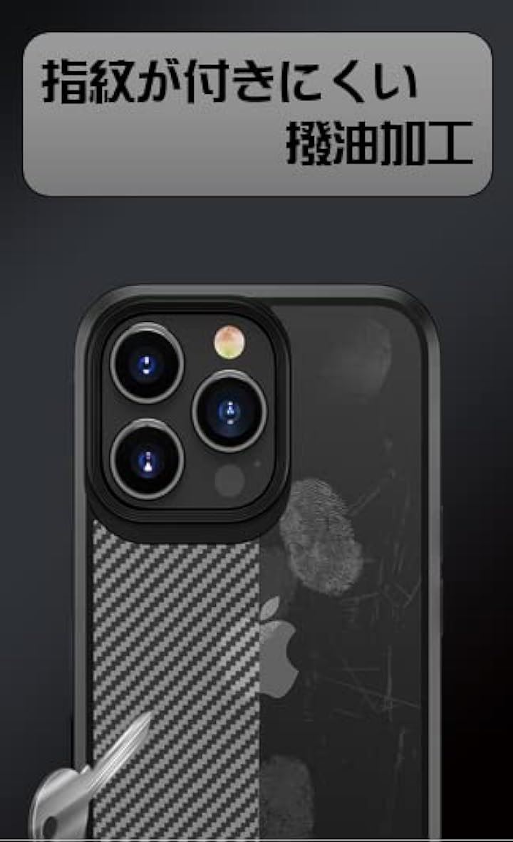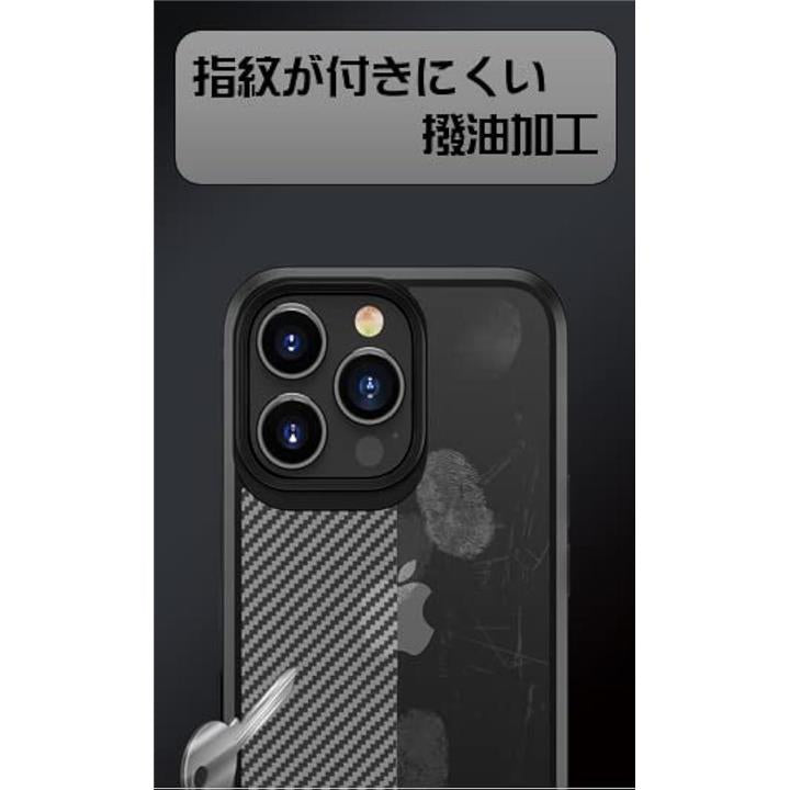 iPhone ケース 半透明 カーボンデザイン 指紋防止 ワイヤレス充電対応