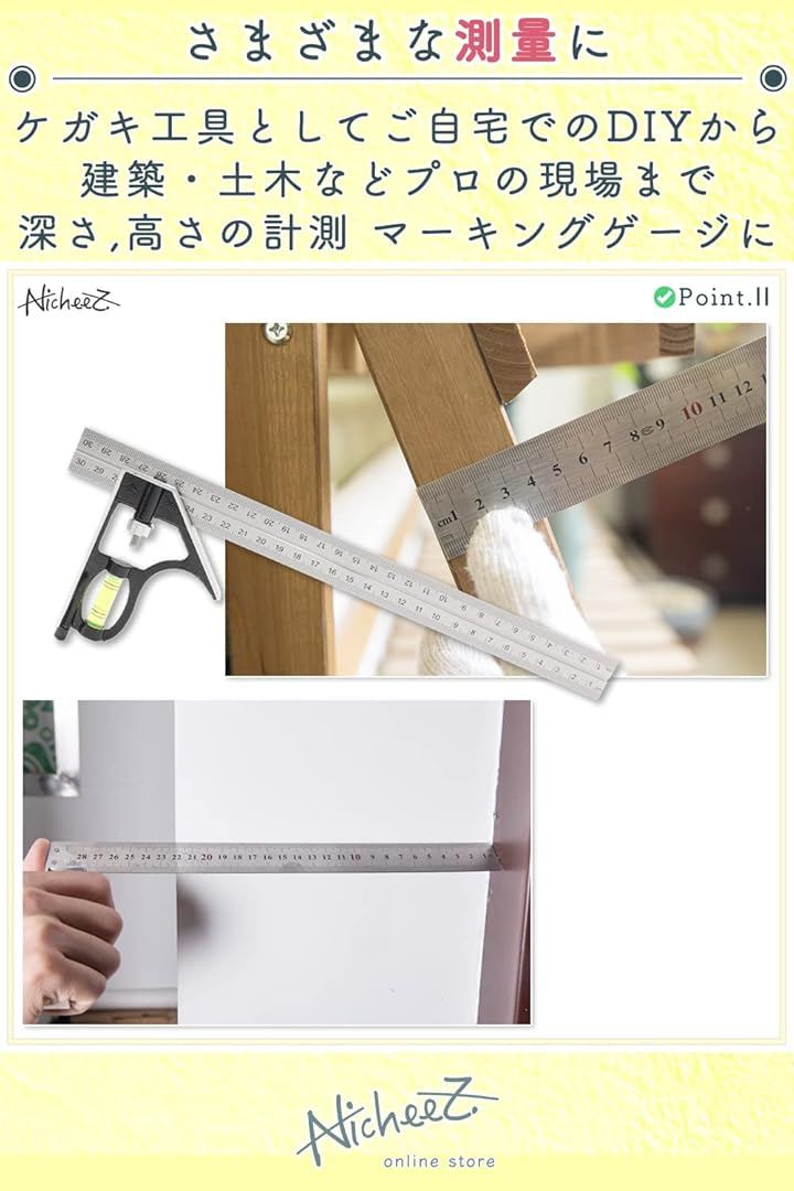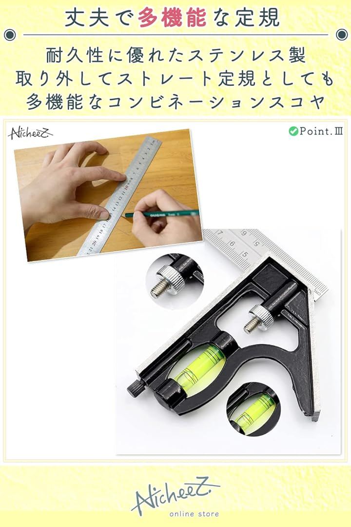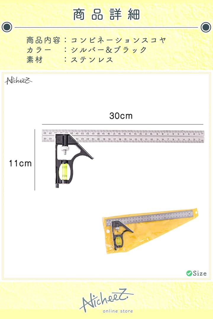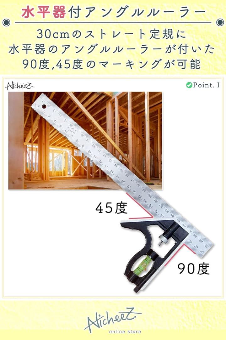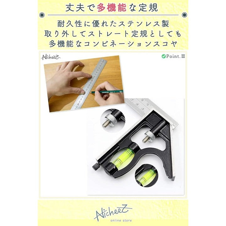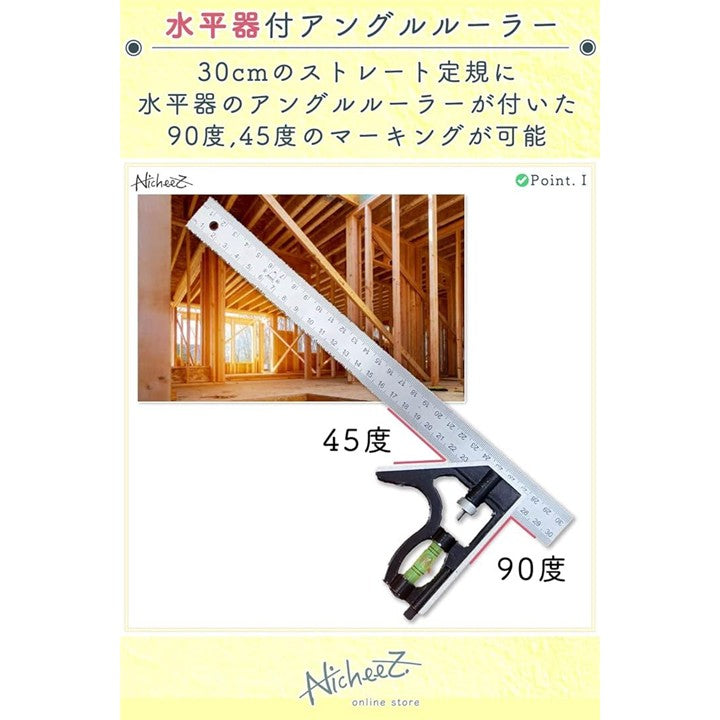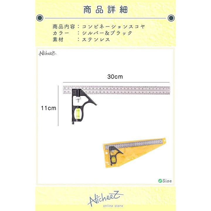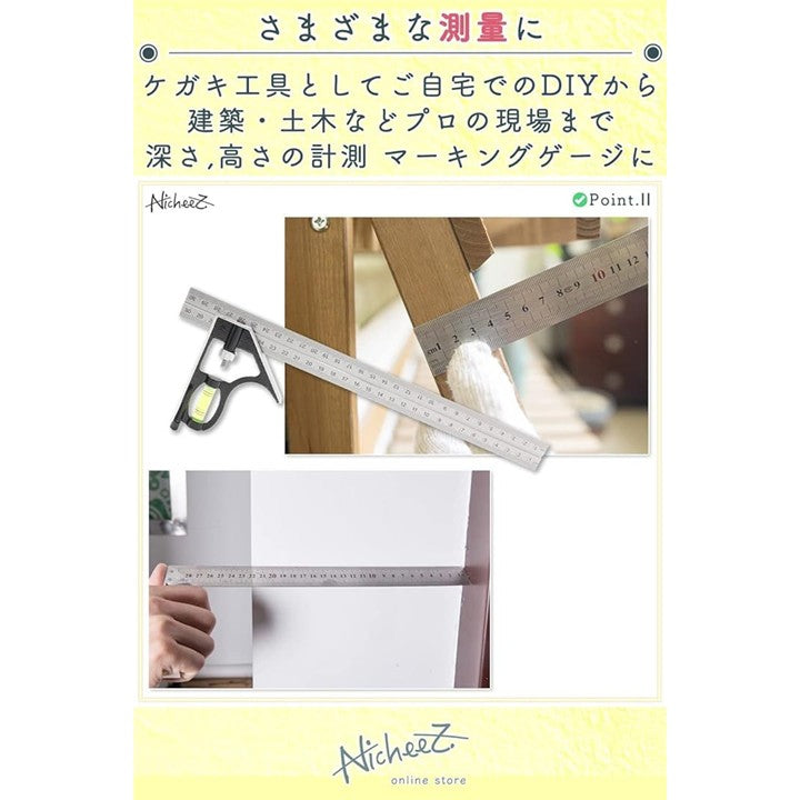 コンビネーションスコヤ アングルルーラー ケガキ 水平器 直角 定規 300mm