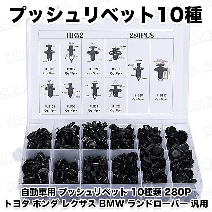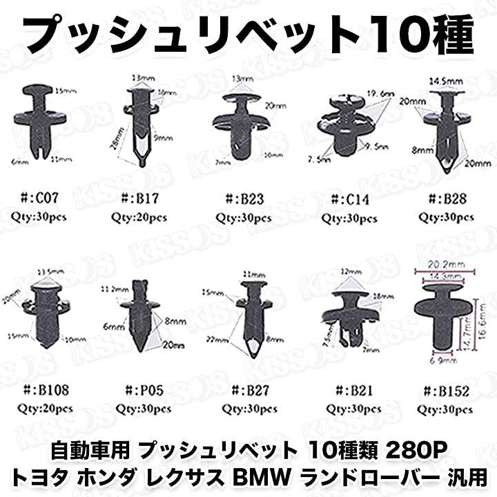 互換品自動車用 プッシュリベット 10種類 280P トヨタ ホンダ レクサス BMW ランドローバー 汎用