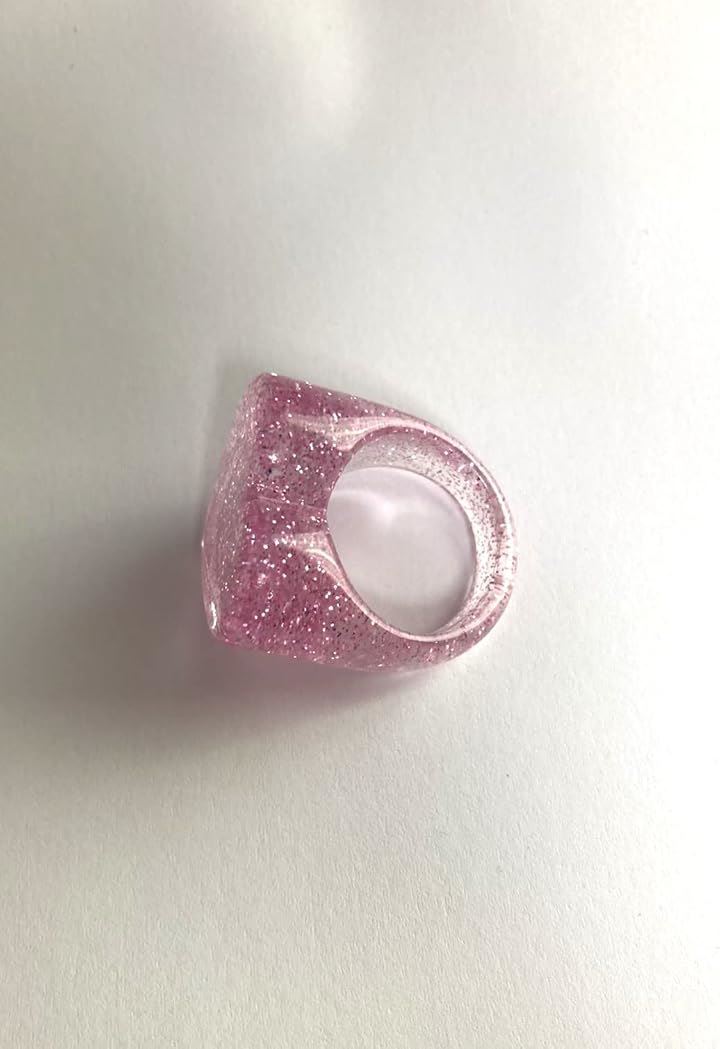 ホマイカリング ハートリング ピンク ラメ入り 可愛い アクリル 16号 存在感あり