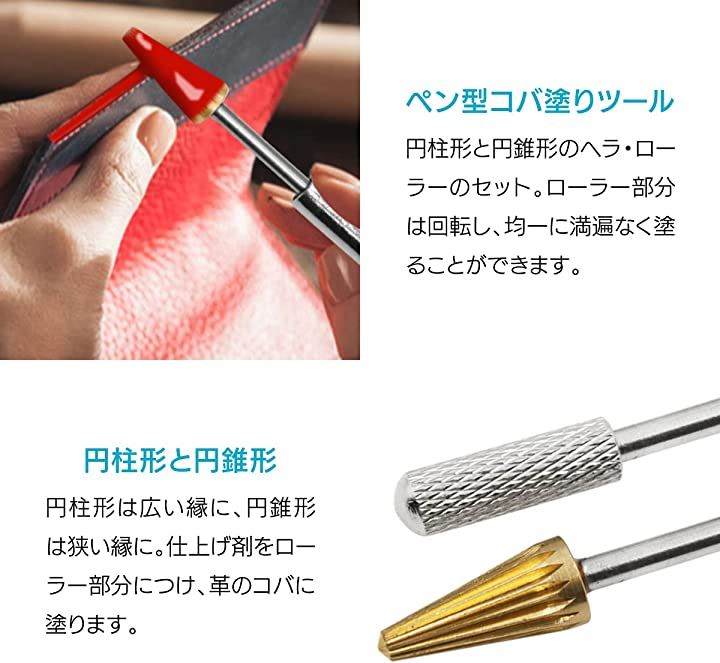 レザークラフト 工具 革 コバ 補修 コバ塗り 仕上げ 初心者 円柱形・円錐形 2種セット