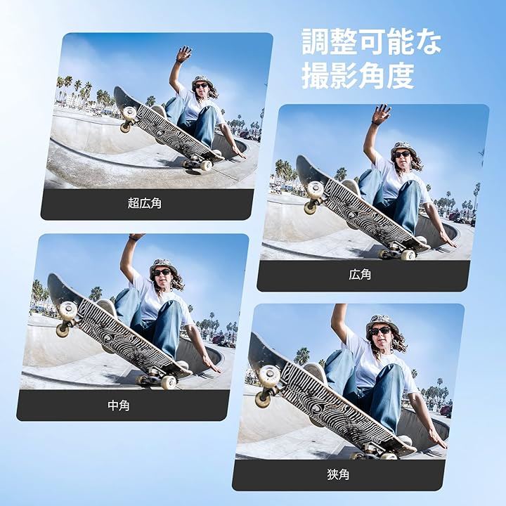 また、調整可能な170度広角レンズを搭載しており、より幅広い画角が得られて、より臨場感のある映像を撮影できます。