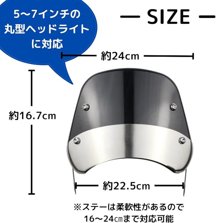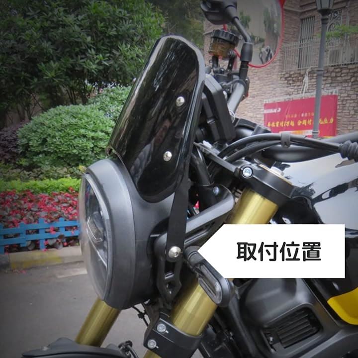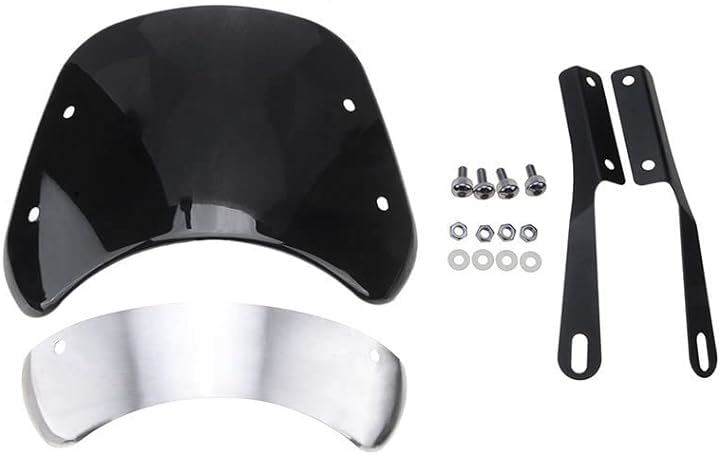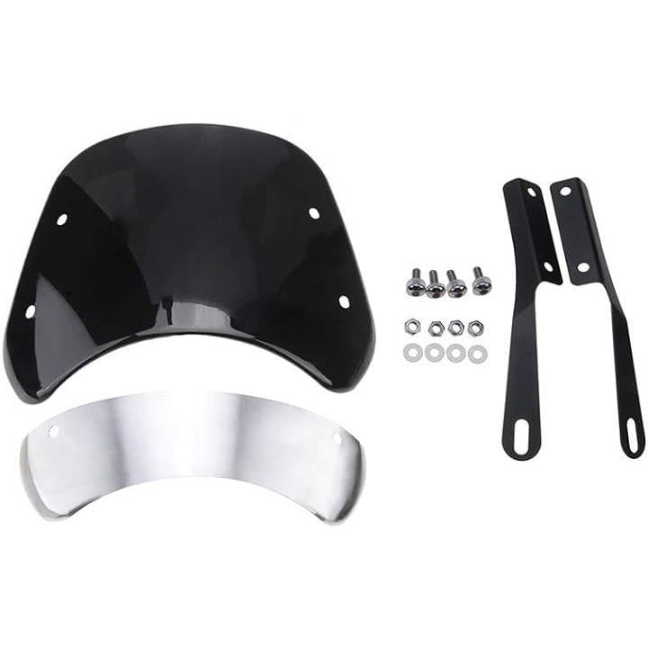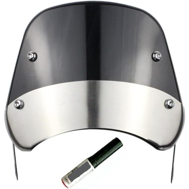 互換品バイク汎用スクリーンねじロック剤付 風防 オートバイ メーターバイザー カウル 風除け ユニバーサルフィット 取り付け簡単 ロゴなし ブラックxシルバー