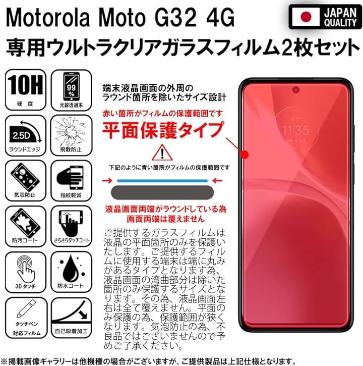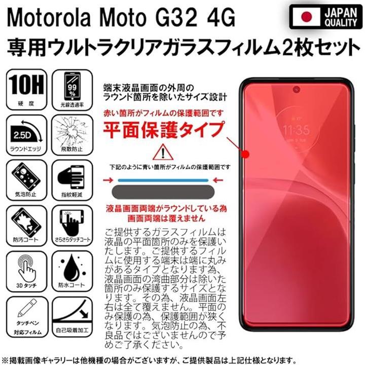 2枚セットフィルム Motorola G32 4G 対応 ガラスフィルム 保護フィルム 強化 高透過 高光沢 日本製 旭硝子 硬度10H 2.5Dラウンドエッジ 自動吸着