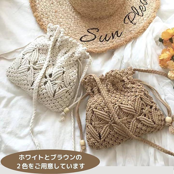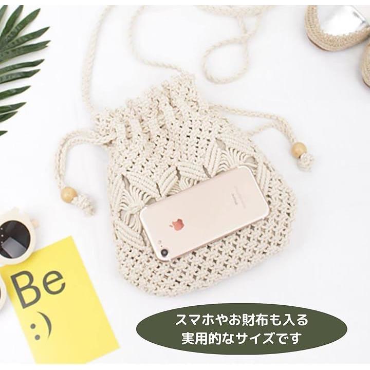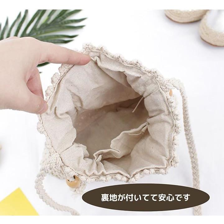 編みバッグ ショルダー ポーチ ストロー 手編み レディース メッシュ カゴ スマホ 巾着 ミニ 旅行 ビーチ 浴衣