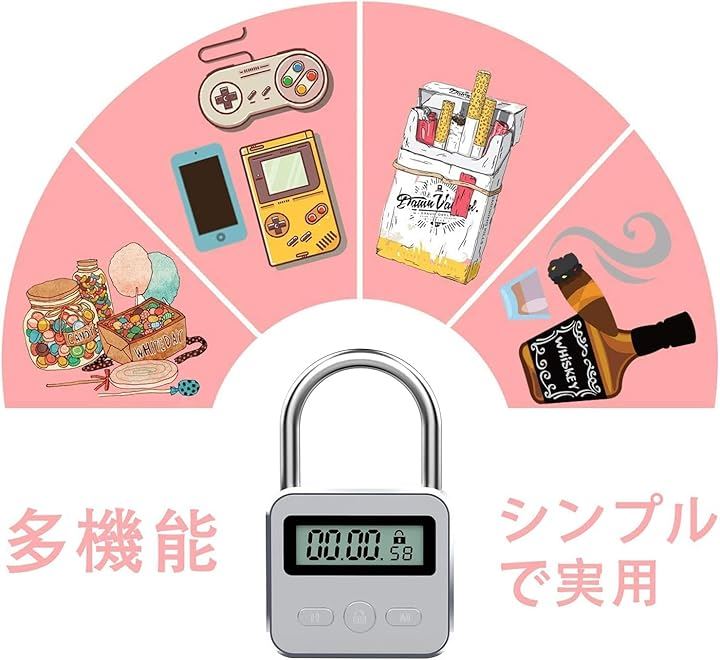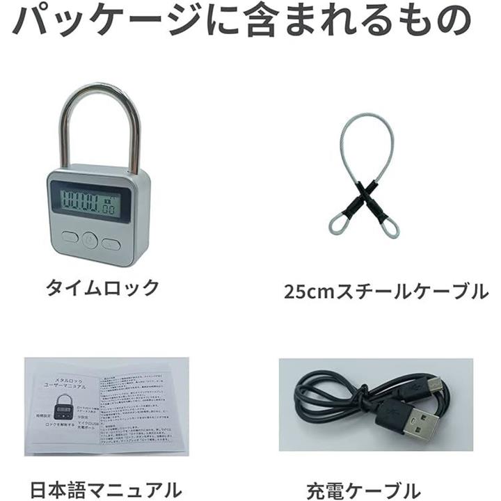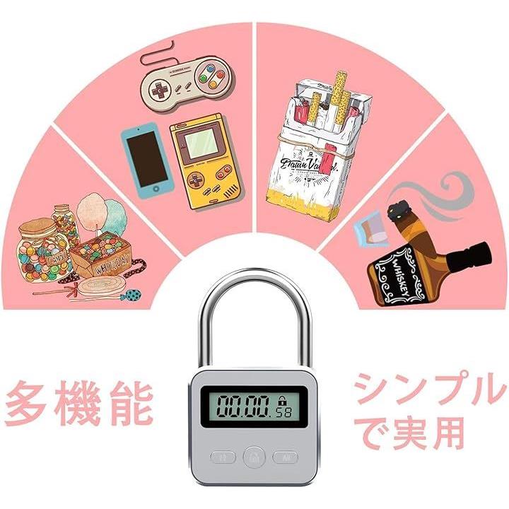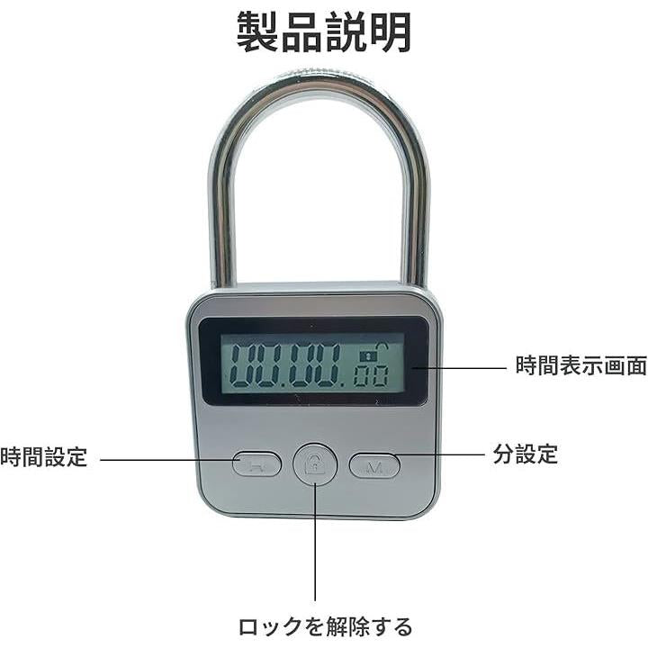 タイマー式南京錠 スマホ依存症対策 LCDディスプレ USB充電式 すタイマーロック タイムロック タイム南京錠 日本語取扱説明書付き
