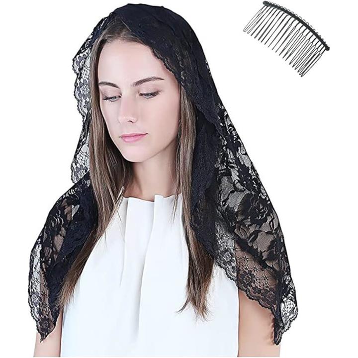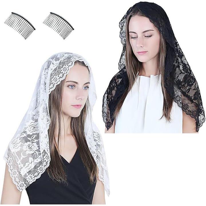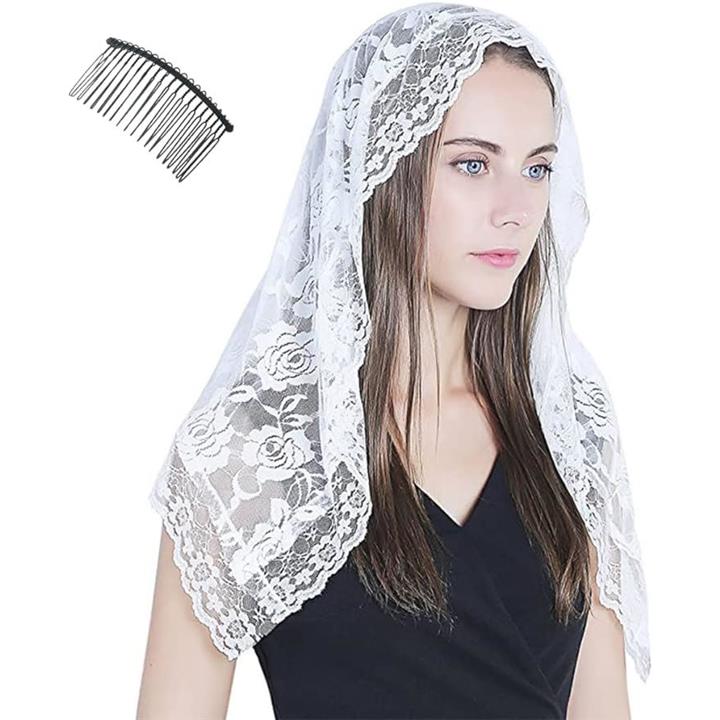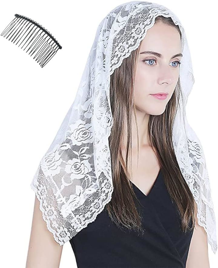 カトリックベール ミサ 取り付け用コーム付き ずり落ちない レース 礼拝用 教会ベール