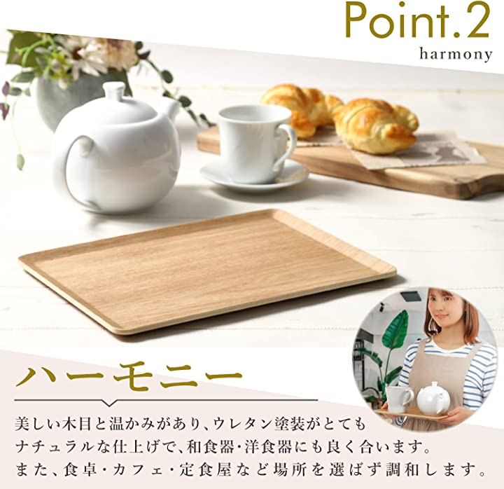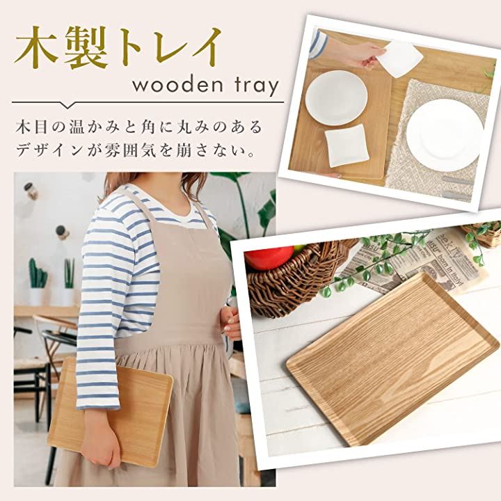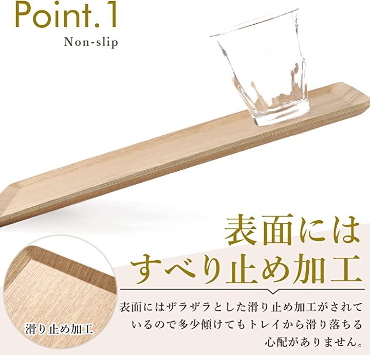 木製トレイ 木製トレー カフェ 長方形 お盆 すべり止め加工 ノンスリップ
