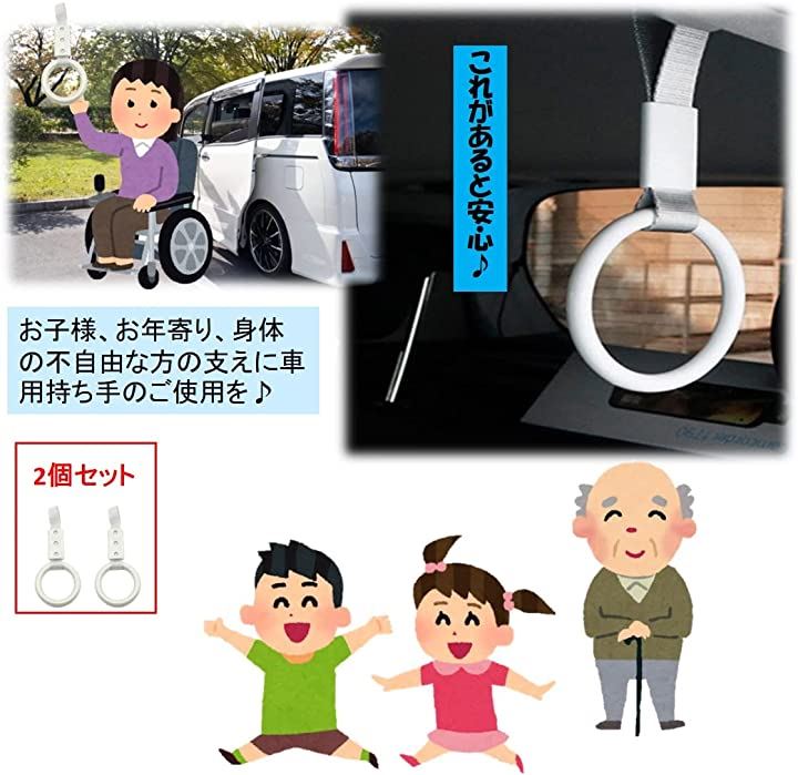 車用 持ち手 2個セット 乗り降り サポート お年寄り 後部座席 吊り革