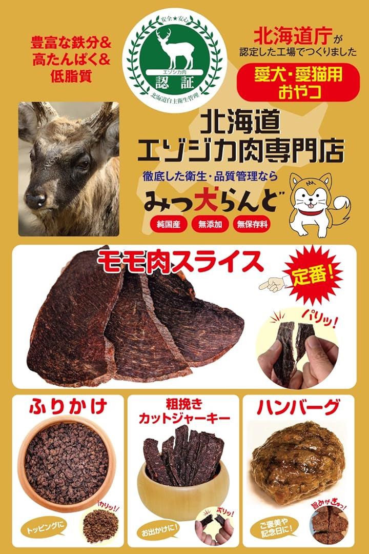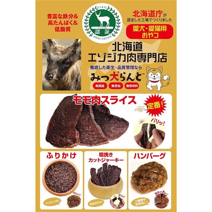 エゾシカモモ肉スライス 鹿肉ジャーキー 犬 猫 おやつ 無着色・無香料 北海道庁認定