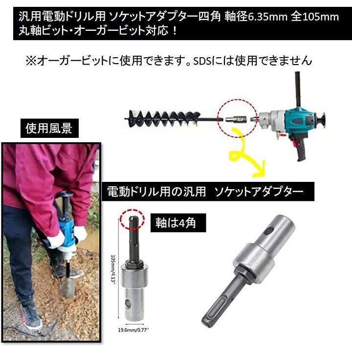 互換品 汎用 電動ドリル用 ソケットアダプター四角 軸径6.35mm 全長105mm 丸軸ビット