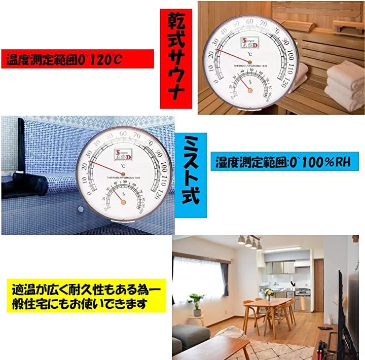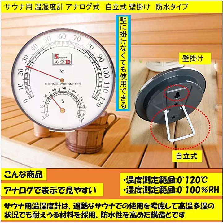 サウナ用 温湿度計 アナログ式 自立式 壁掛け 防水タイプ 温度計