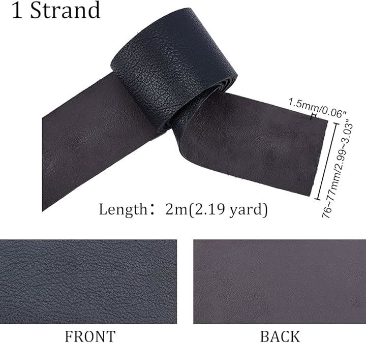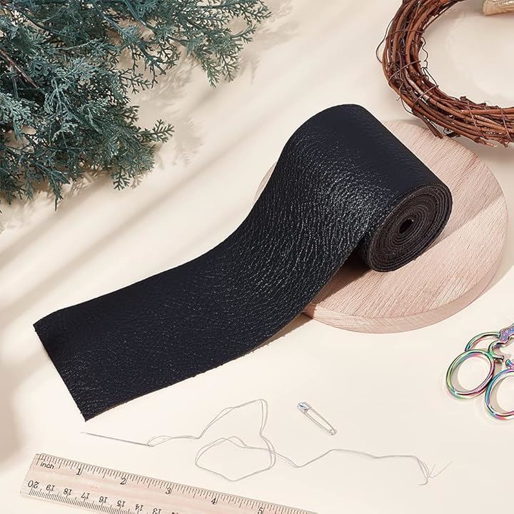 レザーテープ 合皮リボン 1ロール 厚さ1.5mm 長さ2m 合皮の補修テープ 簡単補修 合成皮革 柔らかい 手作り ハンドメイド 持ち手 革小物 手芸用 縫製工芸 衣類 飾り 黒
