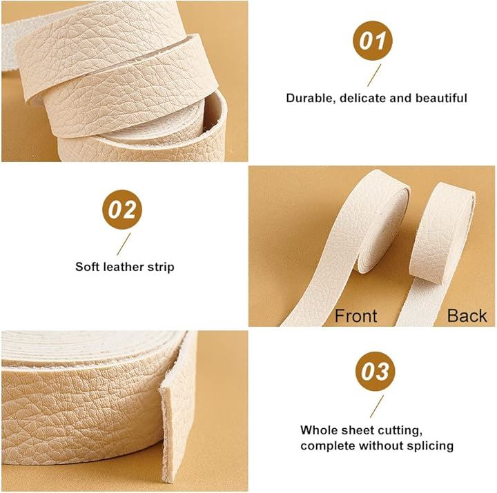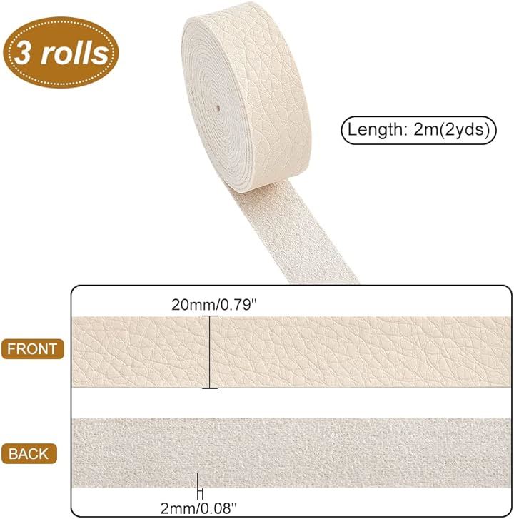 レザーテープ 合皮リボン 長さ2m 3ロール 厚さ2mm 幅2cm 合皮の補修テープ 簡単補修 合成皮革 柔らかい 手作り ハンドメイド 持ち手 革小物 手芸用 縫製工芸 衣類 飾り 白色