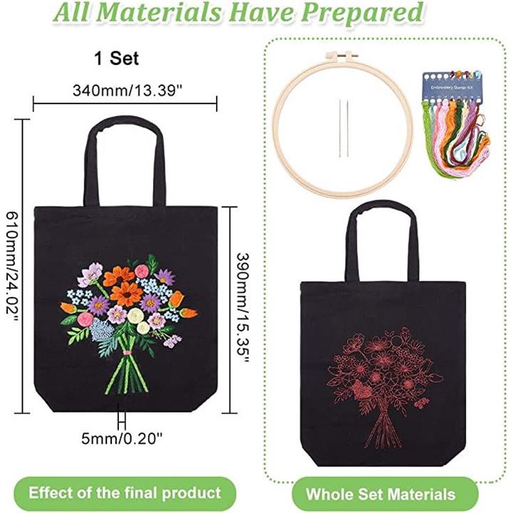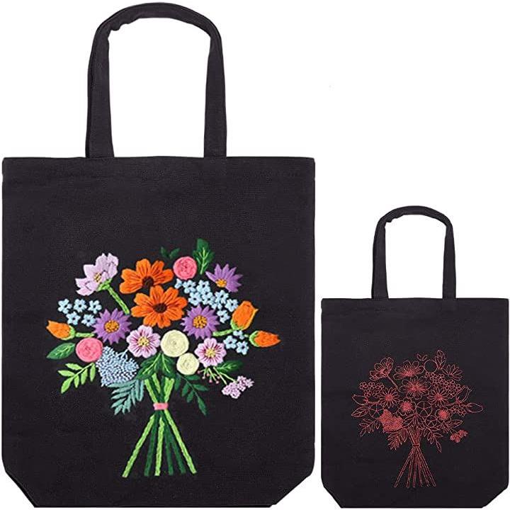 互換品 刺繍バッグキット 初心者セット 刺繍キット 刺しゅうキット 花柄 35x33cm
