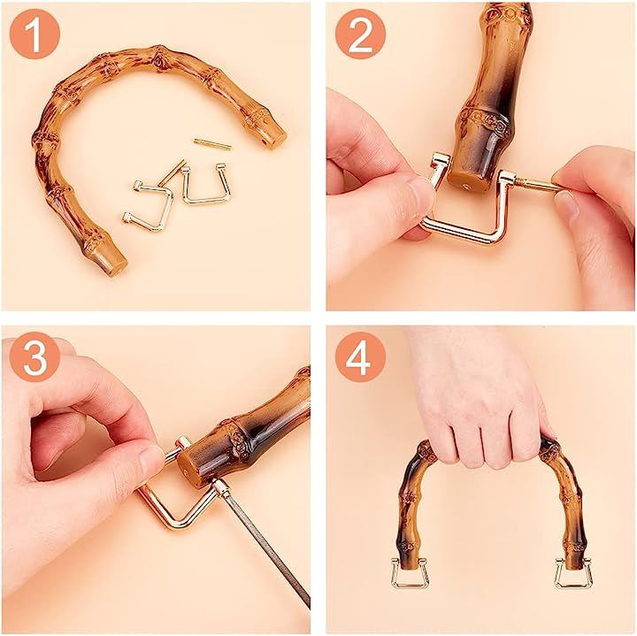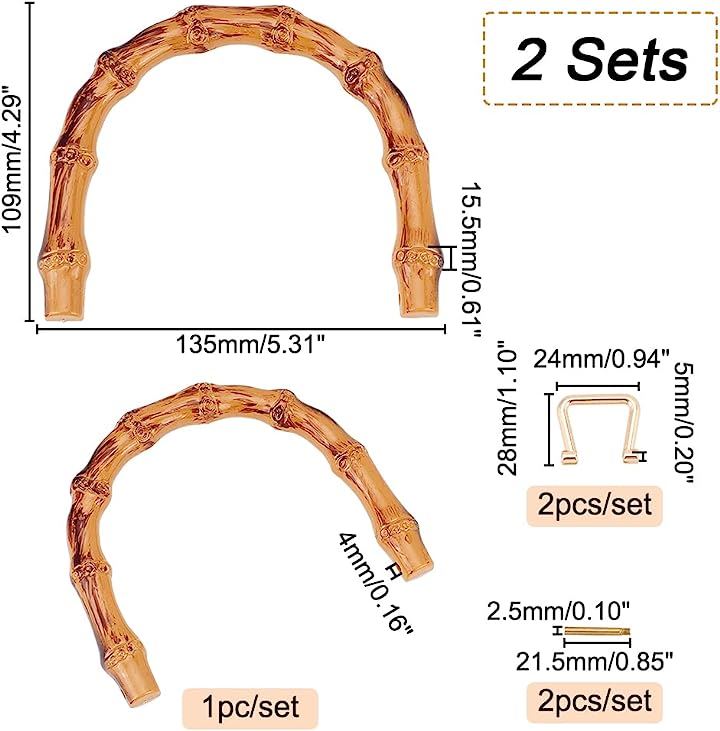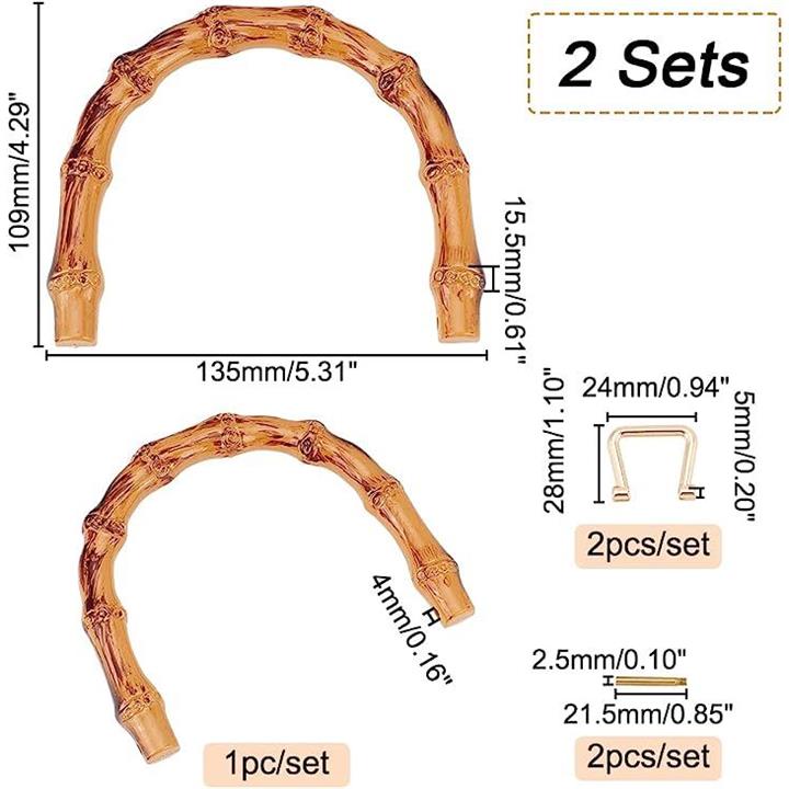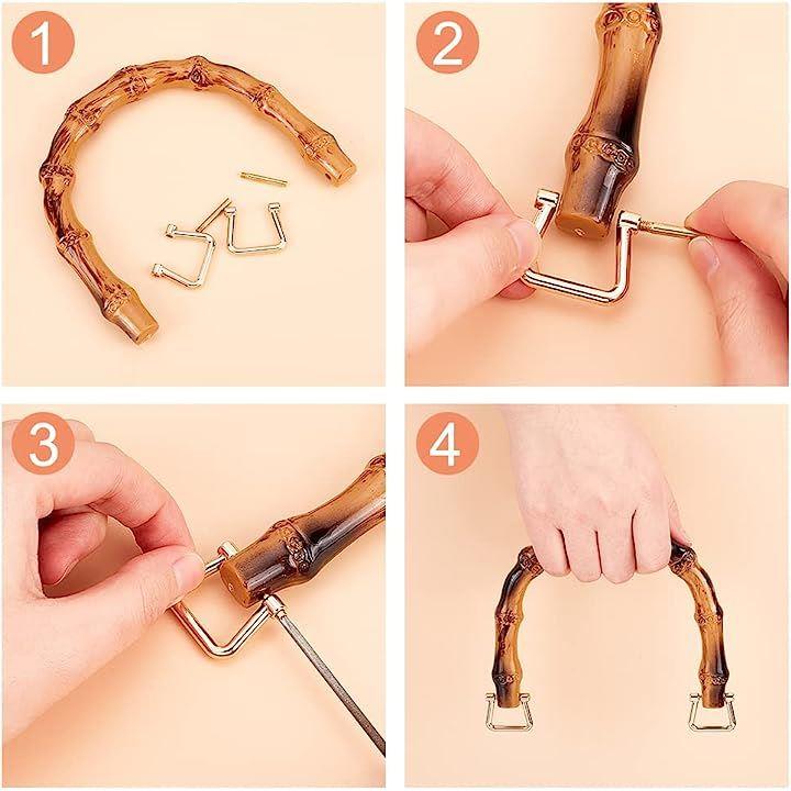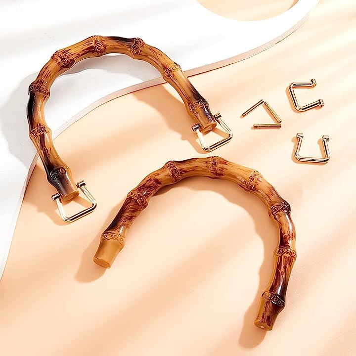 2本バッグ 持ち手 D型 ハンド 樹脂 竹形 バッグハンドル リング 交換用 U型 財布ハンドル DIYハンドバッグ 内径10.7cm