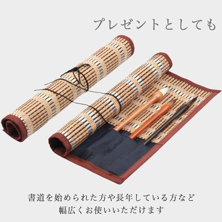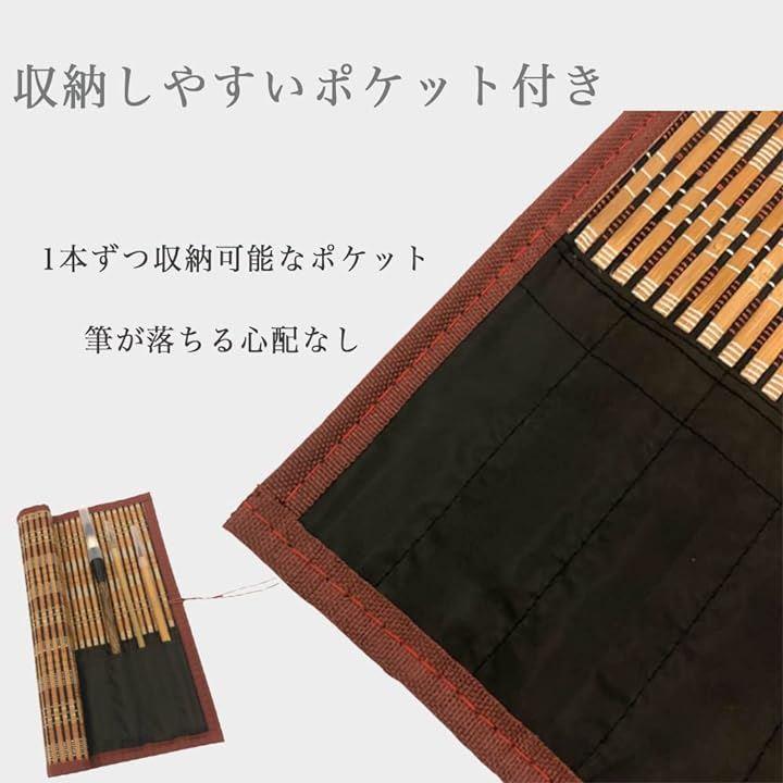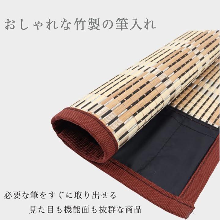 筆巻き 書道 習字 筆入れ 竹製 持ち運び ポケット付き 筆保管 収納