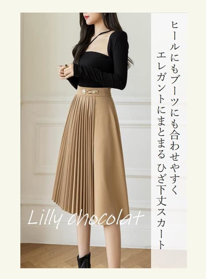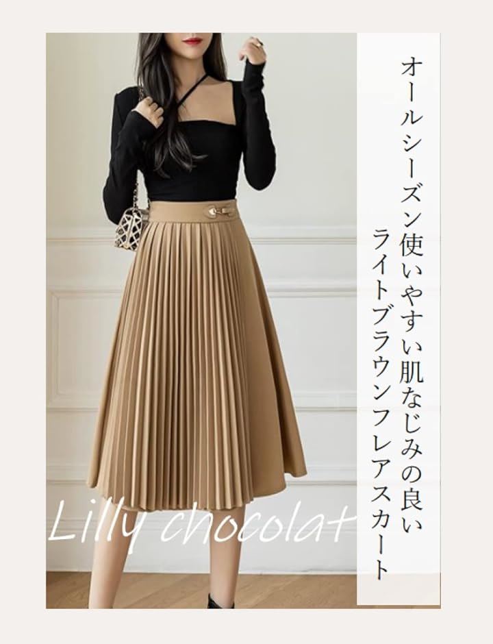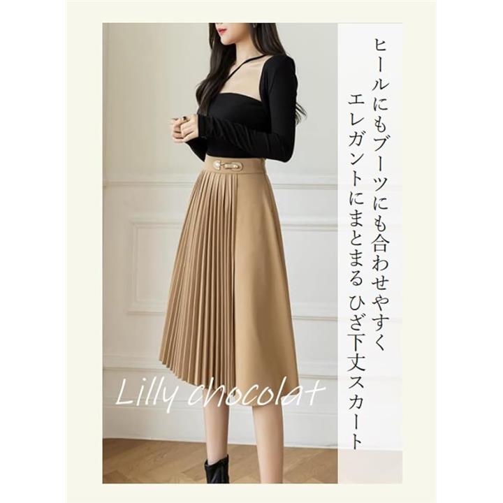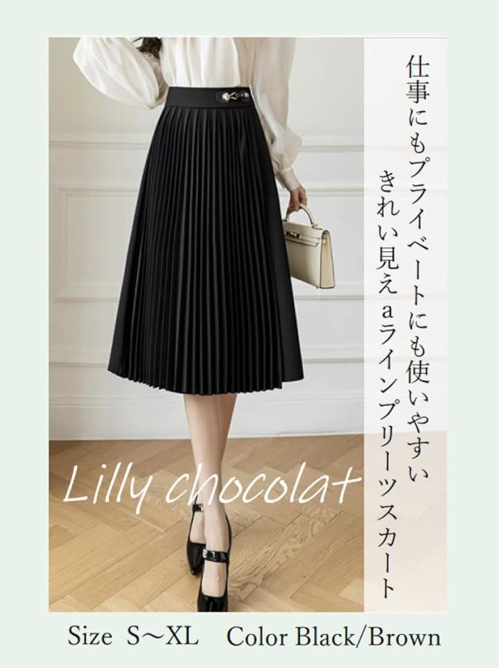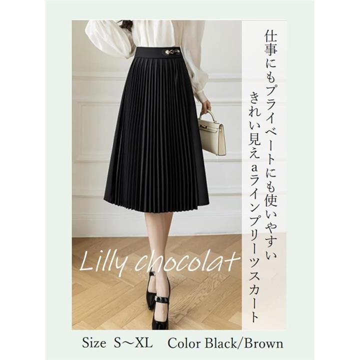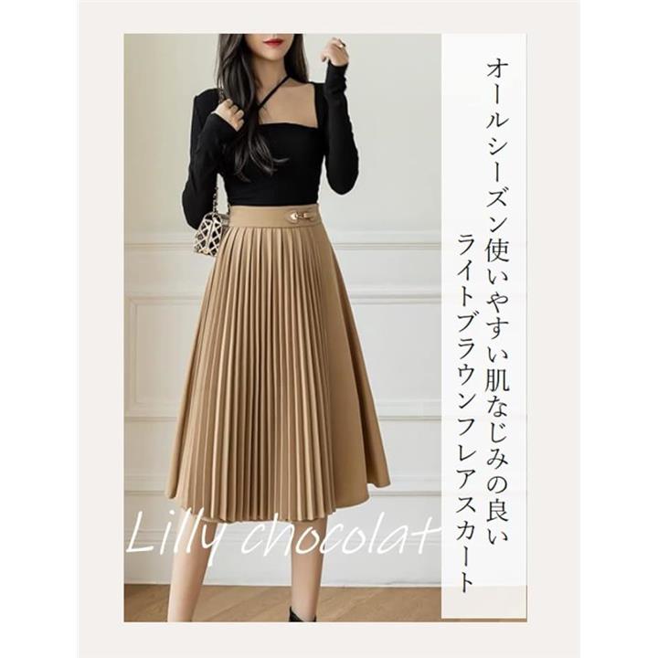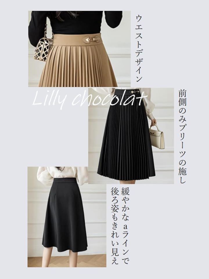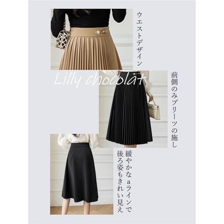リリー ショコラ プリーツスカート オフィス レディース フレア ハイウエストスカート オフィススカート aラインスカート ひざ丈 ミモレ丈 フレアー シンプル デート 通勤服 フォーマル パーティー