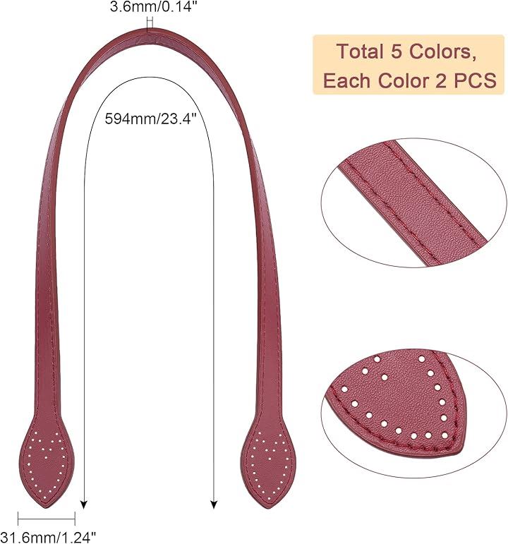 レザー持ち手 10本 バッグ持ち手 5色 交換用 ビジネスバッグ 付け替え ハンドル レザーバッグストラップ 長さ約60cm
