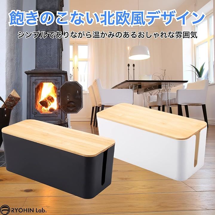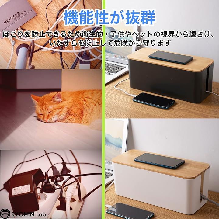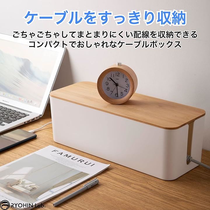 良品ラボ ケーブルボックス 木製 スリム コード収納 ケーブル収納 コンセント 配線 電源タップ おしゃれ 1個