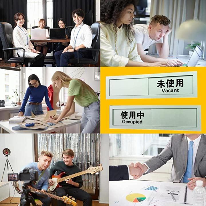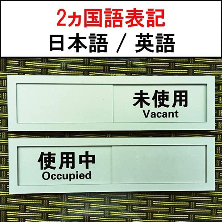 スライド式 サイン プレート 使用中 表示板 日本語 英語 テープ付き 使用中-未使用