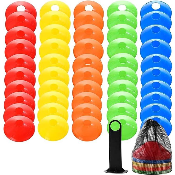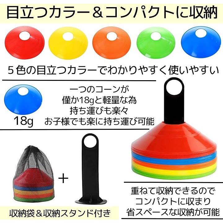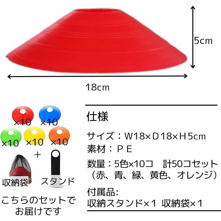 マーカーコーン カラーコーン スポーツ トレーニング 50個 5色x10個 ラック 収納袋付